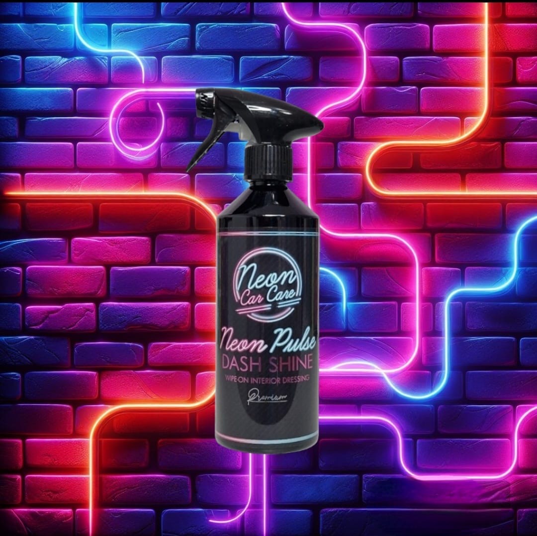 Discription - Neon pulse premium dash shine is a wipe-on liquid dressing specially formulated for interior use. It will enhance the appearance of dashboards, facia, vinyl, plastic, wood, trims and other polished surfaces. This premium formulation also returns plastics to their original darkened colour and leaves a fresh car fragrance inside the vehicle.